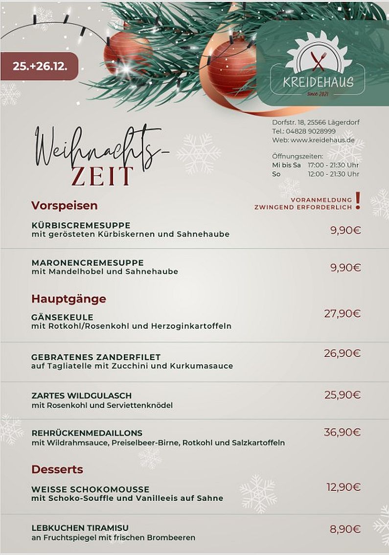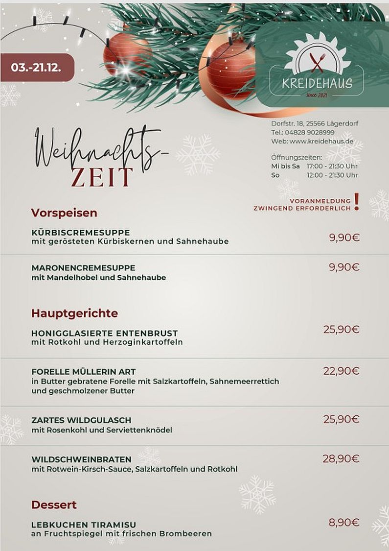 Liebe Gäste, hier unsere zusätzliche Speisekarte für die Weihnachtszeit 2025.
